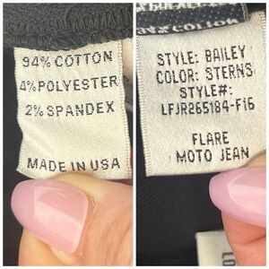 Elevate your wardrobe with these black Lovers + Friends Bailey Flare Moto jeans. The cotton spandex blend fabric is of superior quality, making these jeans comfortable and durable. The mid-rise jeans have a zipper accent and button closure, adding the perfect amount of edge to the classic fit.