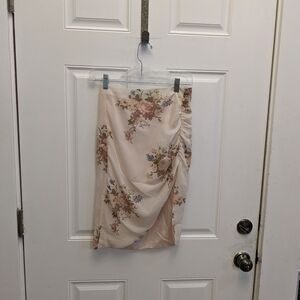 Revolve LPA Floral High Slit Skirt. Florals have gold glitter on them. Zips in back.