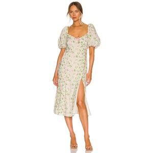 $258 Revolve LPA Hartley Midi Dress Size Medium Floral Puff Sleeve Coquette Feminine