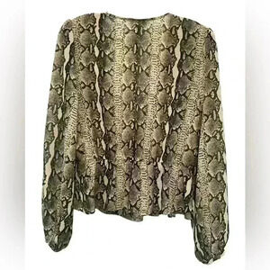 Revolve LPA Pinched Shoulder Snake Print Blouse Top Size M Python Long Sleeve