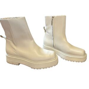 Revolve Larroude Hailey Square Toe Ivory Block Heel Leather Booties
