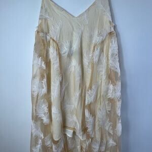 Revolve Line & Dot Feather Overlay Maxi Dress Size S NEW