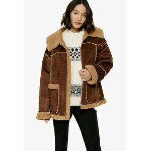 Revolve Line & Dot OVERSIZED Jackson Faux Suede Shearling Coat Brown XS NWT
