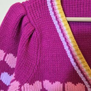 Revolve LoveShackFancy Buena Heart Print Cropped Cardigan Sweater Sz Small Pink