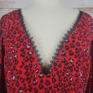 The wild cheetah print reveals your adventurous side, while the loose silhouette and kimono sleeves appeal the breezy boho vibe. . Self: 55% rayon 45% viscose.Lining: 100% poly. Fully lined. Wired V-front. Lace trim. Back zipper and tie closures.