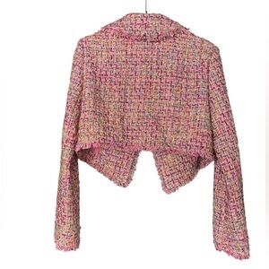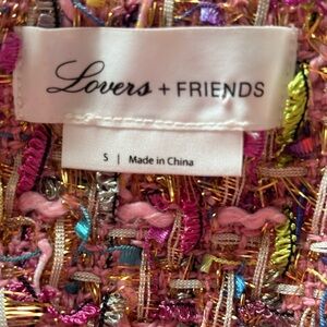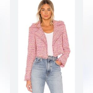 Revolve Lovers & Friends Paola Cropped Jacket Pink Tweed Gold Metallic Small - Perfect Condition