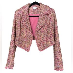 Revolve Lovers + Friends Paola Cropped Jacket Pink Tweed Gold Metallic Small