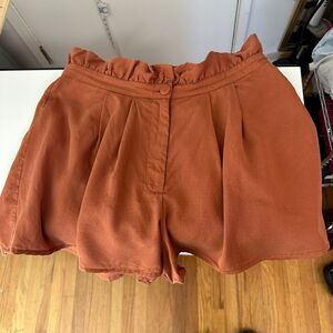Revolve Lovers + Friends Rust Paperbag Tati High-Waist Pleated Button Shorts L