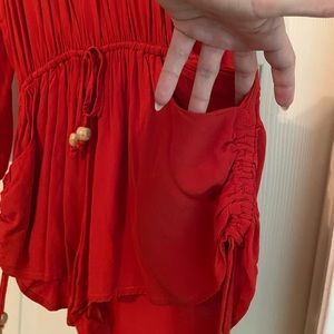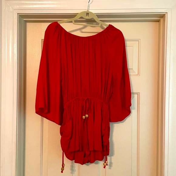 NWOT! Never worn! Purchased from Revolve. Super cute romper with drawstring side detail on shorts and waist. Has pockets! Nice lightweight, breezy fabric! Perfect for going out or throwing over a swimsuit at the beach!