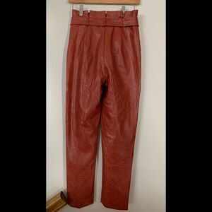 Revolve Majorelle Christopher terracotta brown vegan leather pants, worn 1 time for modeling purposes, excellent condition. belt, pleated waist, seamed pockets, size XS. SOLD OUT EVERYWHERE.