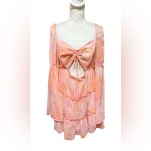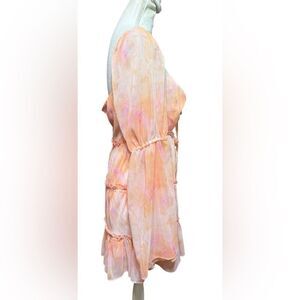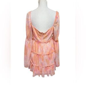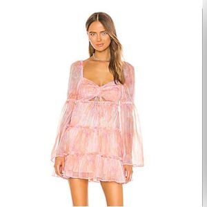 Majorelle Ailish Mini Dress pink White Floral Ruched Long Sleeve Chiffon Sz large