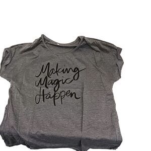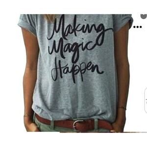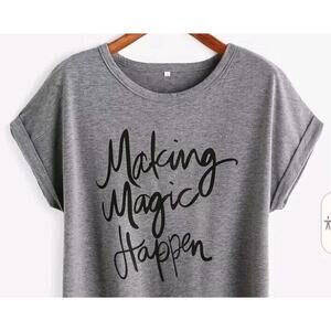 Revolve Making Magic Happen T-shirt Sz L GRAY Cursive Letters Preppy Boho Casual