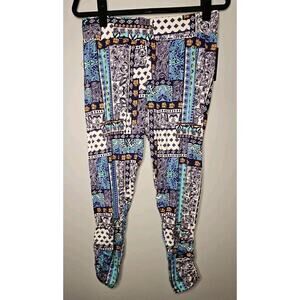 This pair of pants from Michael Lauren is a stylish addition to your wardrobe. The patchwork design in blue color gives it a unique look. The pants come in size small and have an elastic waist for added comfort. The material is a blend of spandex and rayon, making it stretchy and easy to move around in. The jersey fabric type and handmade quality make it feel soft and high-quality. The pants have a cropped style with stirring leg style, making it perfect for casual outings or even loungewear. The closure is pull-on, making it easy to wear.
