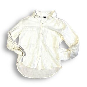 Revolve Monrow Relaxed Button up Blouse In Chalk Long Sleeve Size Medium