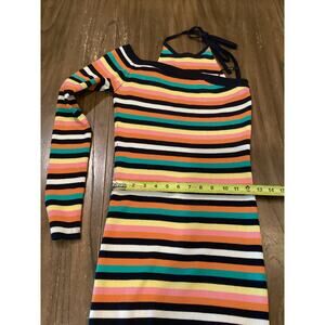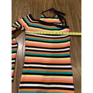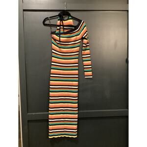 Revolve Monse Striped One Sleeve Halter wool Ribbed Knit Midi Dress Rainbow Multicolor size large its stretchy