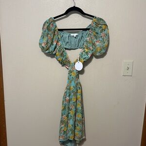 Revolve More To Come Marlene Cut Out Dress in Green Floral Size Medium NWT