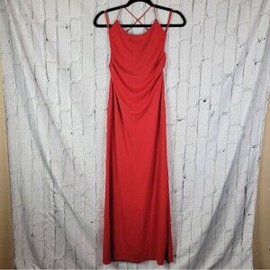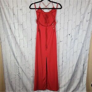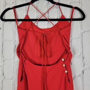 Revolve NBD Arabella solid lava red strappy slit leg back maxi dress
