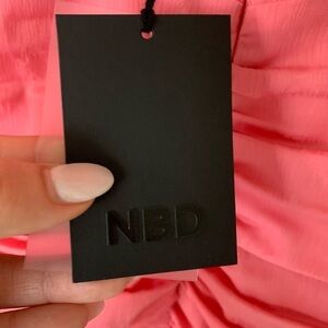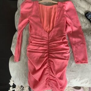 NWT! NBD x Revolve Bekah Puff Sleeve Mini Cocktail Party Dress in Hot Coral Pink