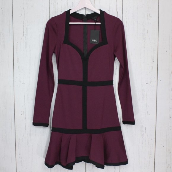 Revolve NBD Burgundy Long Sleeve Mini Dress M