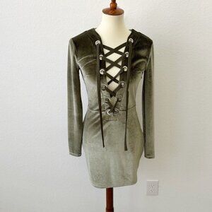 Revolve NBD Connor Velvet Mini Dress in Olive Size S