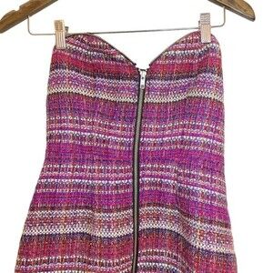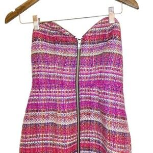 Revolve NBD Pink Preppy old money Barbiecore Tweed Zip Strapless Mini Dress XS