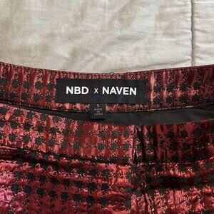 Revolve NBD x Naven Red & Black Metallic High Rise Pants