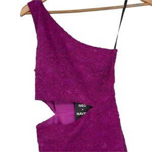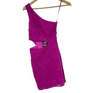 Revolve NBD x Naven Elina Floral Crochet Lace Magenta One Shoulder Mini Dress
