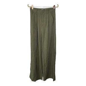 Revolve NONchalant Fabi Wide Leg Pleated Trouser Pant Olive Green Size Small