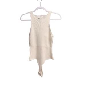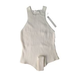 Revolve One Grey Day Cream White Wool Blend Ribbed Bodysuit Tank Size Large NEW