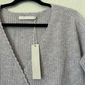 Revolve One Grey Day | Gray V-Neck Cashmere Wrap Sweater