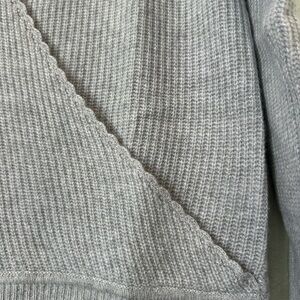 Stay cozy and stylish with this elegant gray V-neck wrap sweater. Perfect for any occasion.