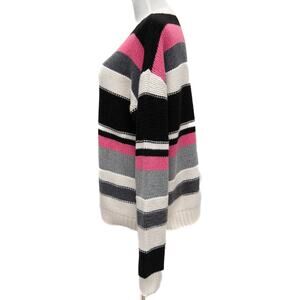 Revolve One Grey Day Striped Superfine Merino Wool Crewneck Sweater Size Medium