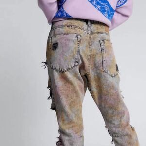 One Teaspoon Acid Wash Distressed Boyfriend Jeans,Zipper/Button Closure.Approx measurement Waist 34”,Length 41.5”,Rise 10”,Inseam 27”.NWT
