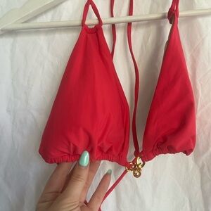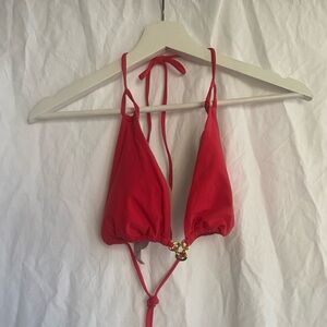 Revolve PQ Avalon Swim Red Chain Tri Bikini Top Size D NEW