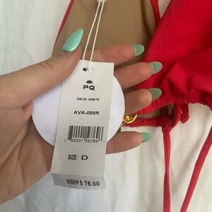 Revolve PQ Swim Avalon Red Chain Tri Bikini Top Size D NEW
