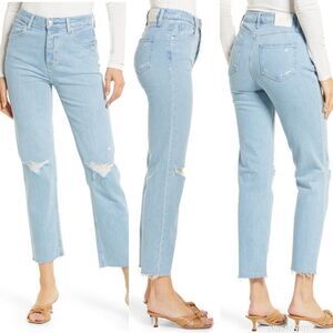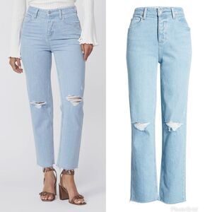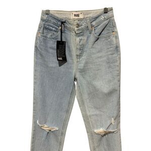 Revolve Paige SARAH STRAIGHT ANKLE High Rise Straight Leg Jeans Crash Destructed