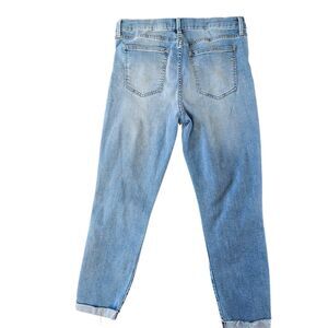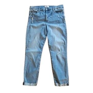 Pistola crop jeans size 31. They feature a raw hem, high rise, plain pockets and distressing. They are a cotton blend that has stretch.