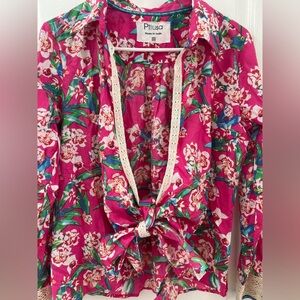 Revolve Pitusa Collared Tie Shirt Size in Fuchsia Floral Print (Size III-L)