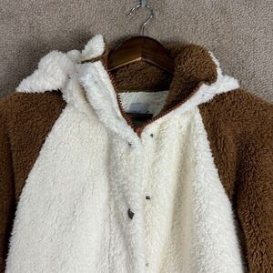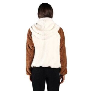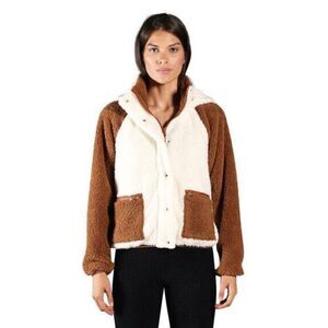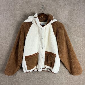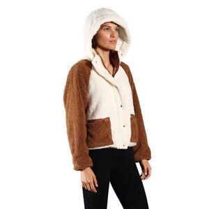 Revolve Plush Sherpa Teddy Jacket Womens Medium M Tan/ivory Removable Hood NEW