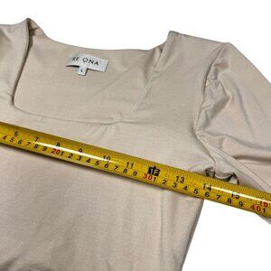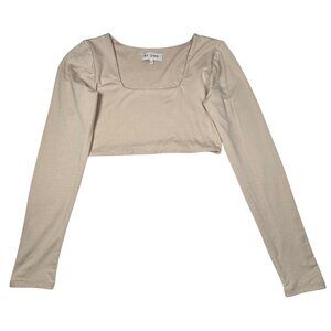 Revolve RE ONA Square Neck Crop Top SZ.L Cream Long Sleeve Y2K Minimalist Staple