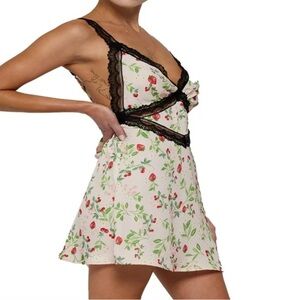 Revolve RESA Amelia Mini Floral Strawberry Dress In Ivory Sz XS Coquette Summer