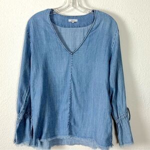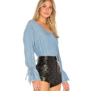 Revolve Rails Zimi Top Medium Vintage Wash Size XS Chambray Bell Sleeves V Neck