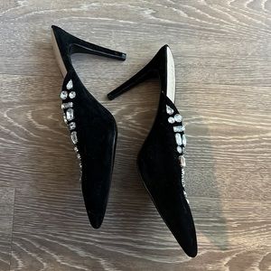 Revolve Raye Black Jeweled Kitten Heels 8.5