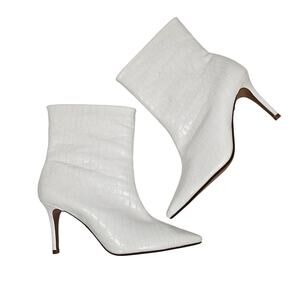 Gorgeous white reptile embossed East booties from Revolve's Raye. Size 8 and in like new condition. Sold out online. Heel height measures 3" and shaft is 6"