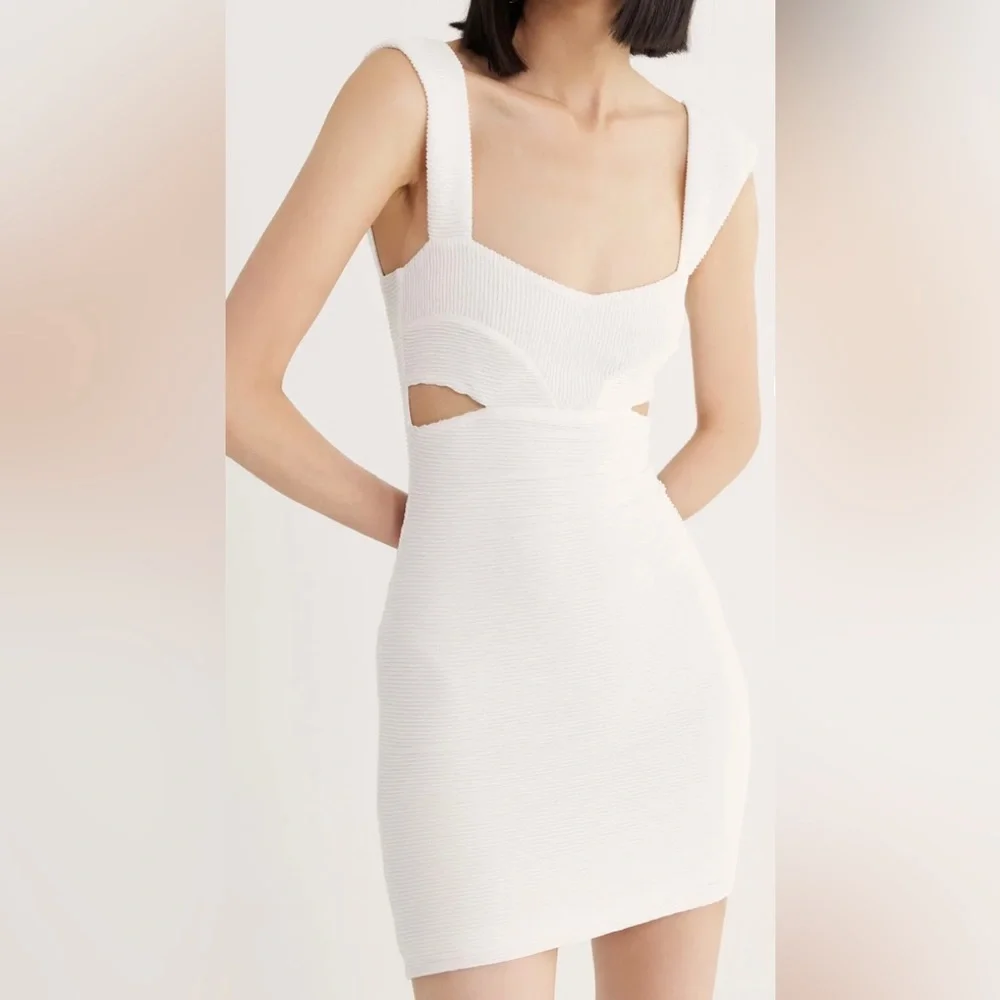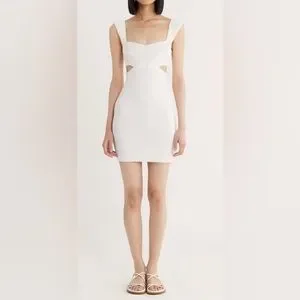 NWT Rumer Rae Mini Dress; sweetheart bodycon dress w/side waist cut out detail, signature textured fabric; wide straps; hidden back zipper; Fully lined; Materials: 💯% Polyester; hand wash; please feel free to drop any questions in Comments.