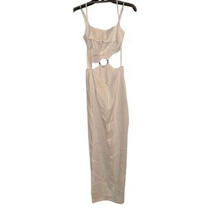 Revolve Rumer Small Linen Avalon Tortoise Ring Cutout Maxi White Dress MSRP 329