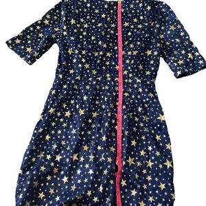 • Details: Wrap-style front, midi length, celestial star print, elegant yet fun design