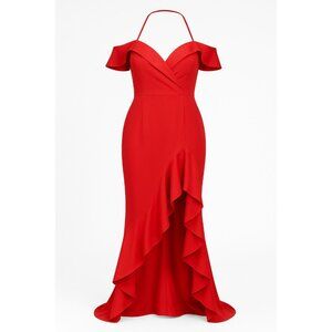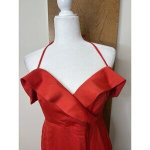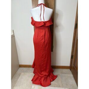 Revolve Satin Ruffle Chrissy Teigen Gown Sz M Holiday Christmas Cocktail Dress