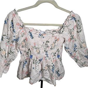 Revolve Saylor Clover Smocked Floral Cotton Blouse Top Large