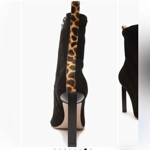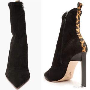 Revolve Schutz Benine Black and Leopard Print Pointed Toe High Heel Ankle Boots